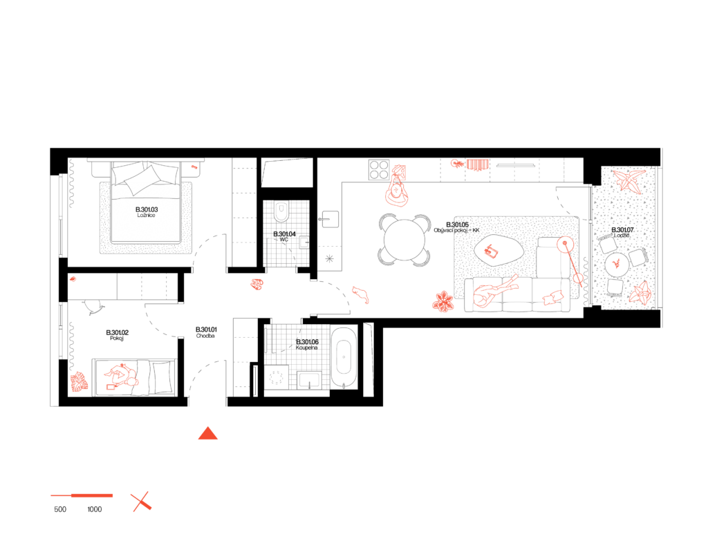 The floor area is the area of the apartment in accordance with the definition given in Section 3 of Government Regulation No. 366/2013 Coll., dated October 30, 2013, on the regulation of certain matters related to co-ownership of apartments.