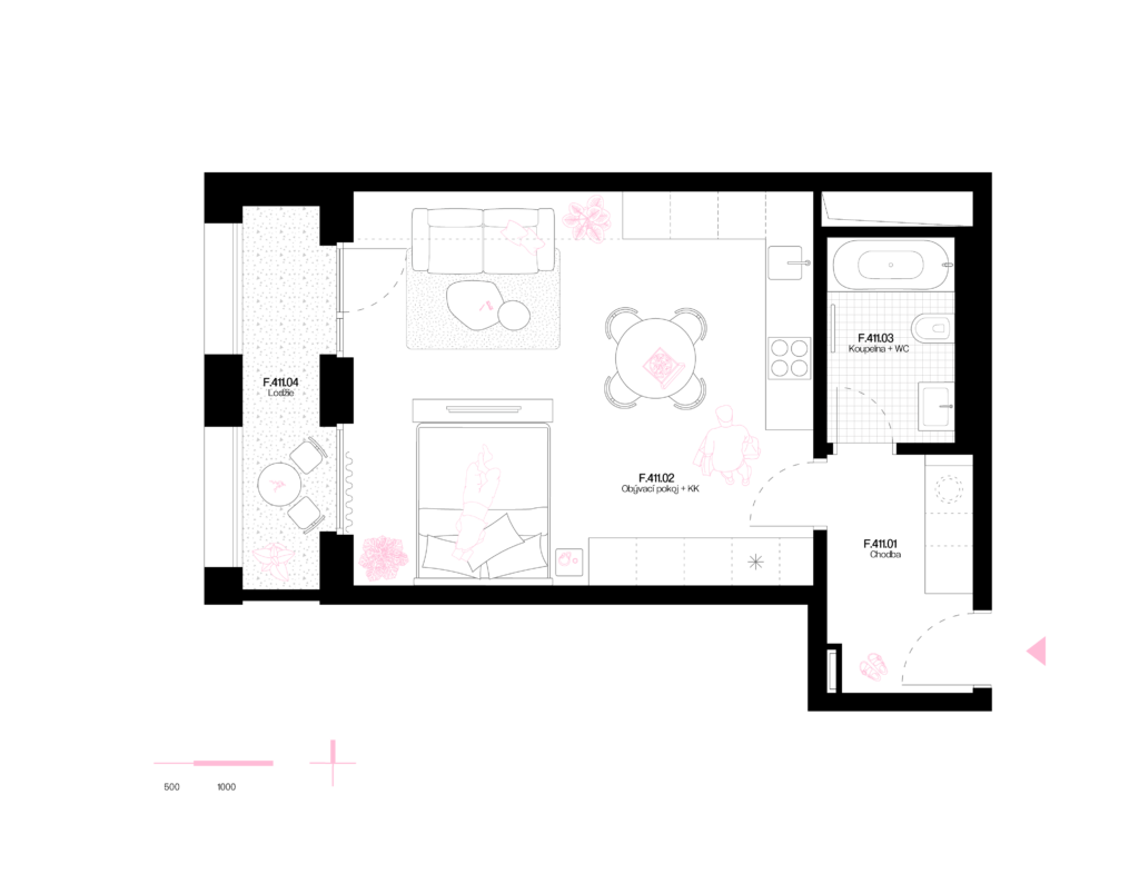 The floor area is the area of the apartment in accordance with the definition given in Section 3 of Government Regulation No. 366/2013 Coll., dated October 30, 2013, on the regulation of certain matters related to co-ownership of apartments.